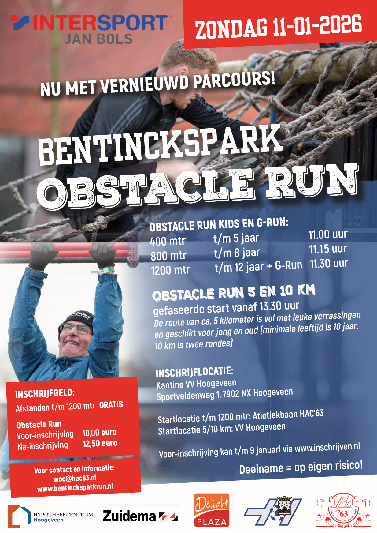 Bentinckspark Obstacle run Zondag 11 januari 2026 Start vanaf 11 uur terrein VV Hoogeveen www.bentinckspark run.nl