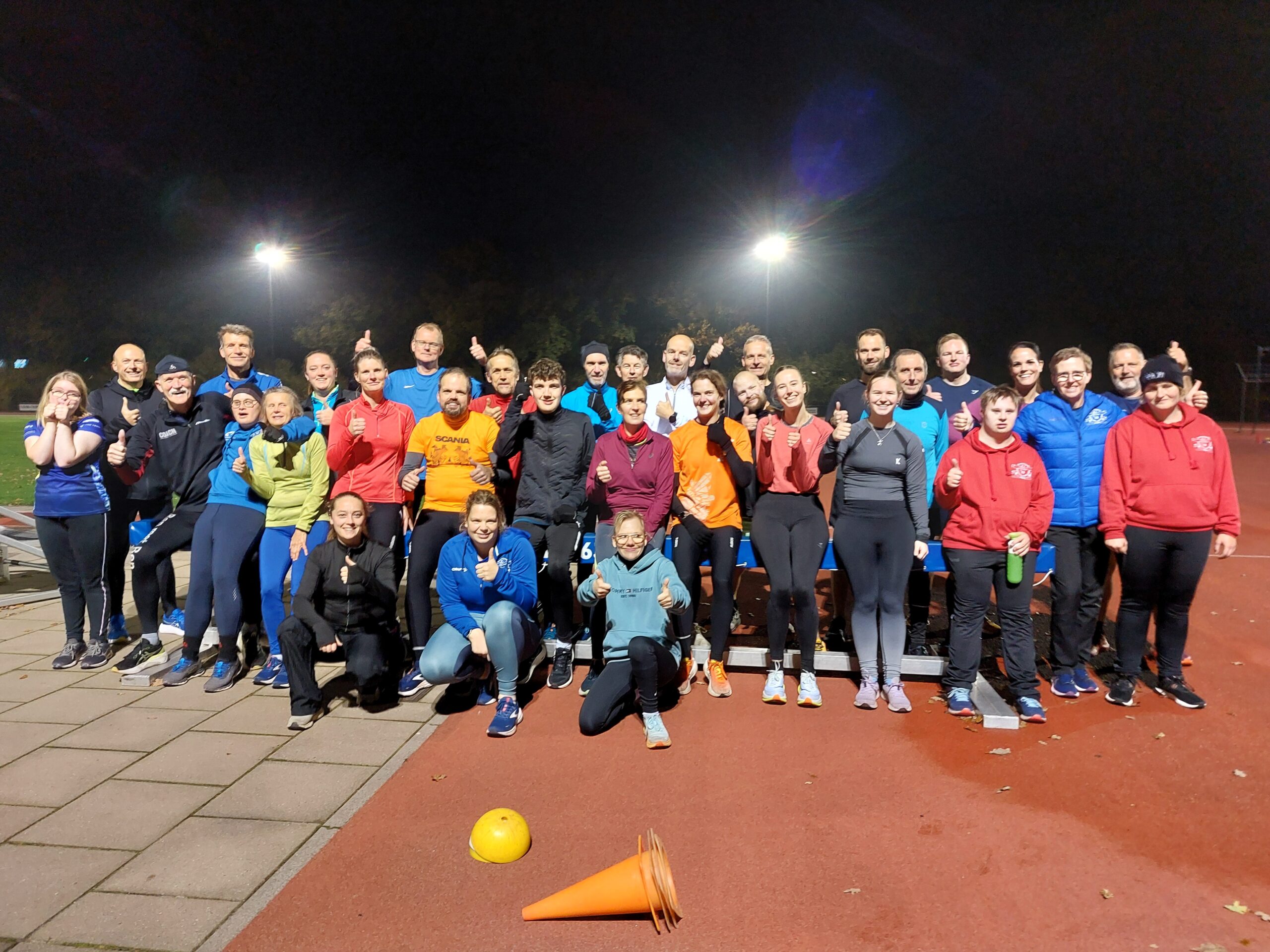 12 november hadden de a-atleten een training samen met de loopgroep van Steven. Steven was meteen enthousiast toen hij gevraagd werd of we dit een keer konden doen. Hij had een ontzettend leuke training bedacht. We begonnen met een gezamenlijke warming-up. Tijdens het inlopen deden we allemaal oefeningen. Daarna deden we een spel, een dobbelsteen zeskamp. Een gezellig muziekje erbij en de sfeer zat er goed in. We hebben allemaal hard gewerkt. Toen zat de training er voor de a-atleten op en ging de groep van Steven verder met hun eigen programma.