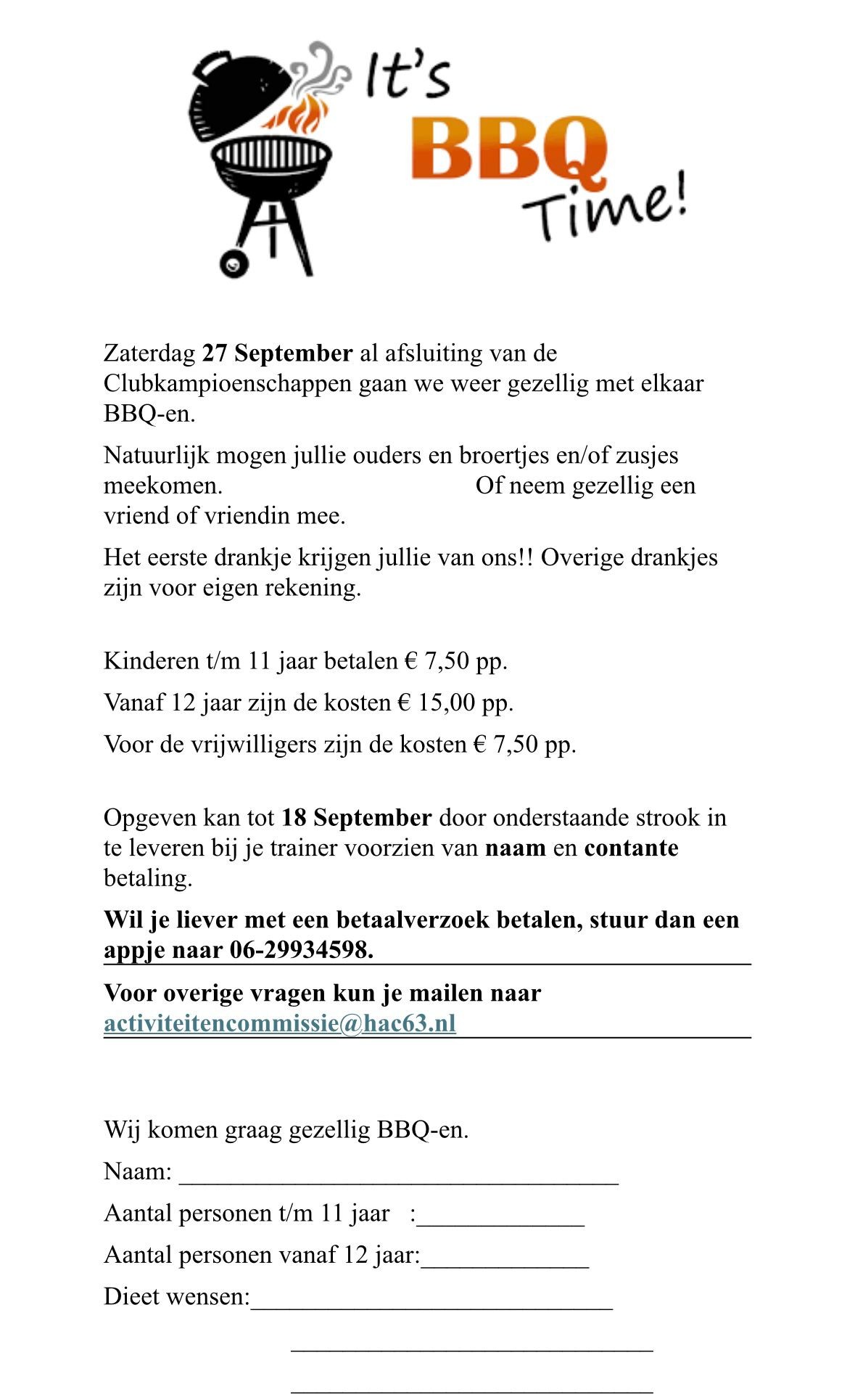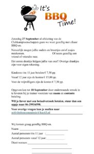 - Op 26 en 27 september vinden de clubkampioenschappen plaats! Zoals elk jaar sluiten we deze gezellige dag af met een BBQ voor alle deelnemers, vrijwilligers, vrienden en familie. 🍔🔥