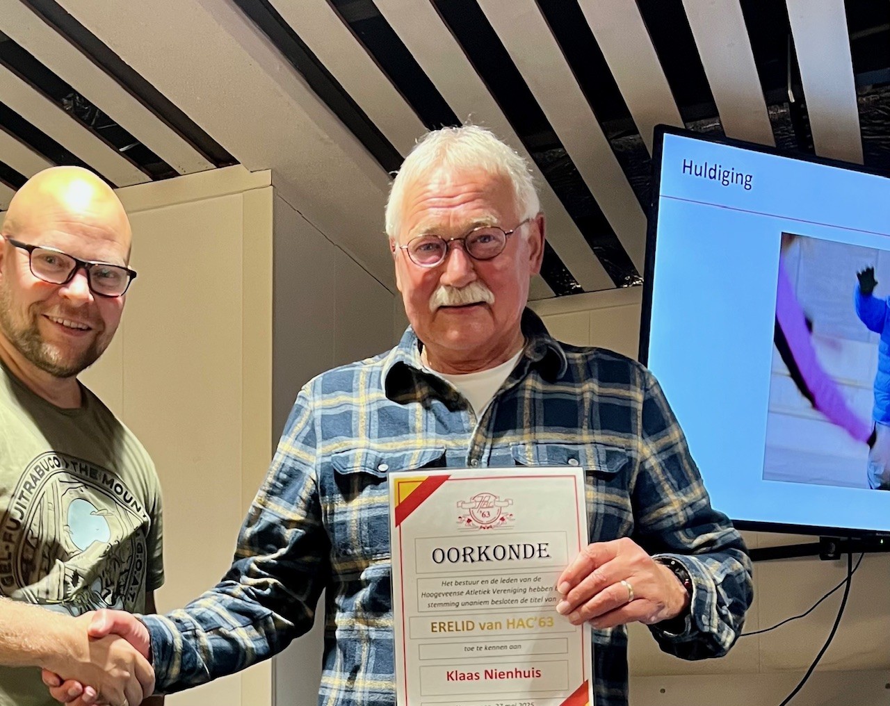 Ik ben bijzonder trots op mijn erelidmaatschap en bedank hartelijk het bestuur en leden van HAC’63,