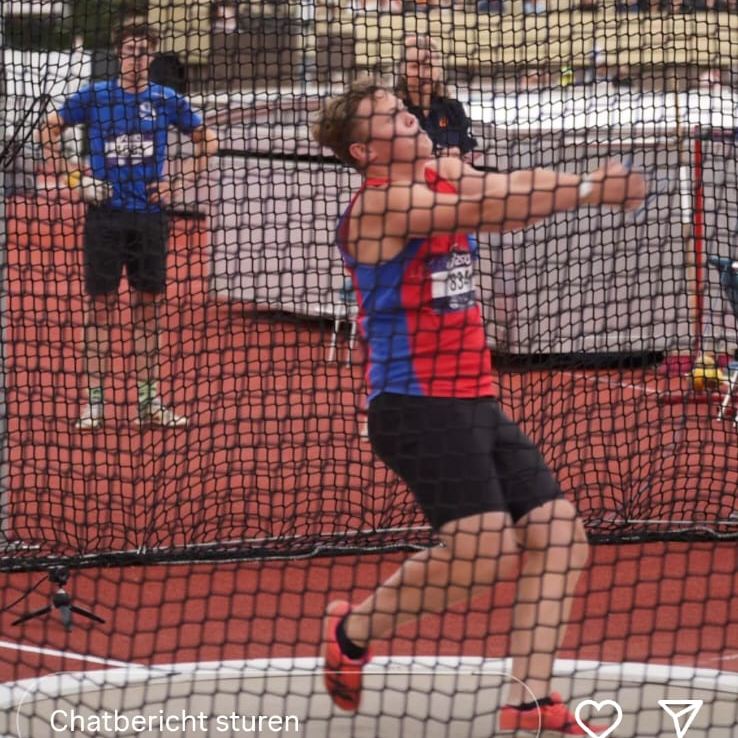 Hilversum – 27-06-2025. Bij G.A.C. Hilversum meldde Aron zich op 27-06-2025 voor het NK U18. Aron kwam uit op het onderdeel kogelslingeren en had zes pogingen om zich te meten met de Nederlandse top.