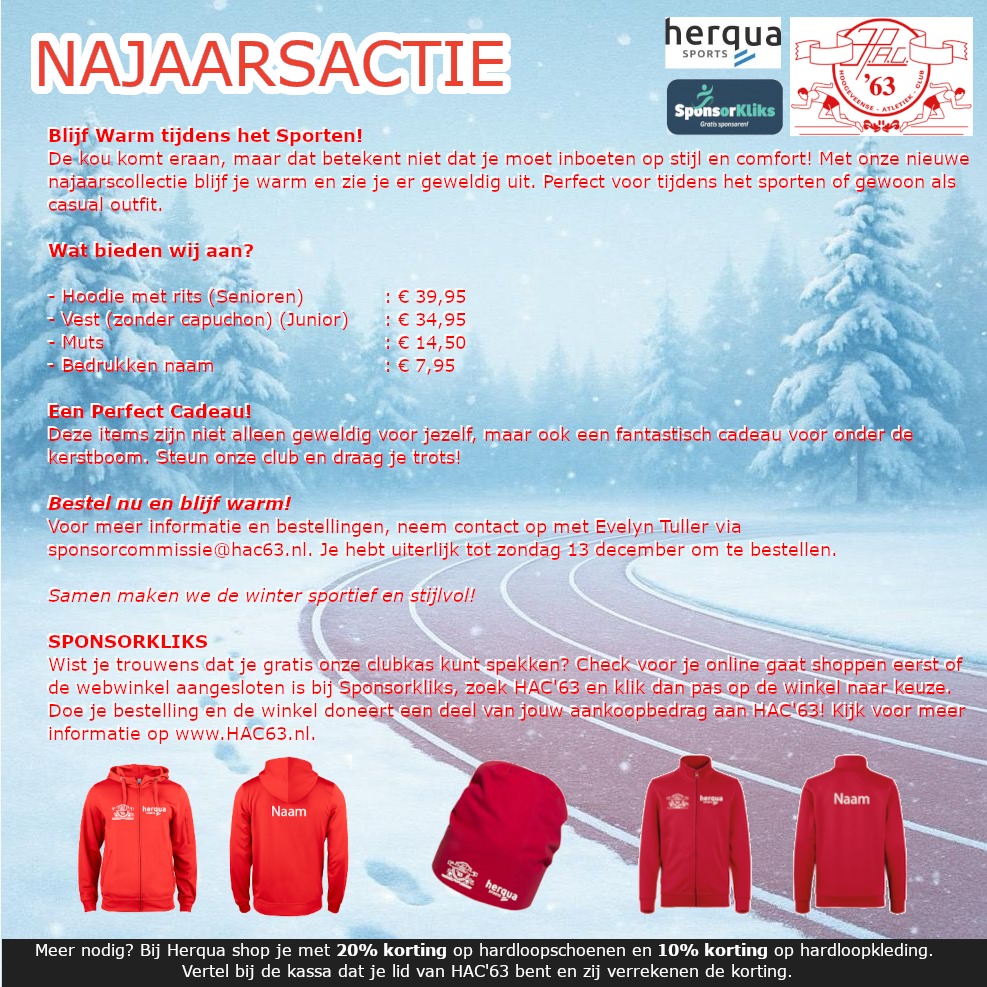 De najaarsactie van HAC ’63 is er weer! Bestel vóór 13 december, dan ligt jouw warme sportoutfit op tijd onder de kerstboom.