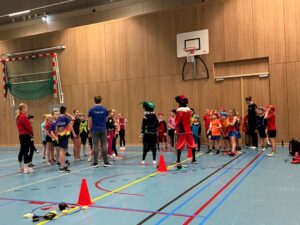 Tijdens de pietentraining kwamen na de warming up zelfs nog twee pieten langs die meededen met het volgende onderdeel van de avond. Het parcours en het spel die de kinderen met behulp van de pieten uitstekend uitvoerde waren een groot succes. De pieten lieten enorm veel leuke dingen zien en waren de pepernoten natuurlijk niet vergeten.
