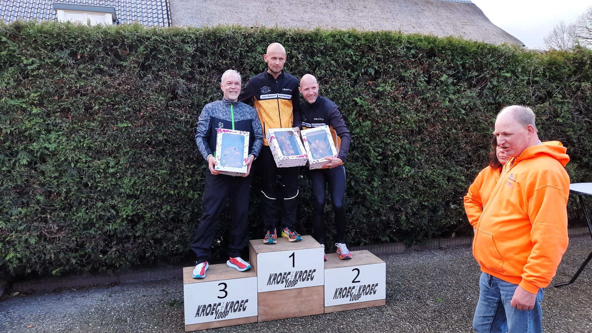 De snelle atleten uit de A-groep die onderling streden om de prijzen, maar ook atleten uit diverse andere groepen. Sommigen gingen zelfs lopend naar de start en verwerkten de Kroegloop in hun training. De lopers hadden geluk, want zij hadden de wind grotendeels in de rug. Erwin Akkerman wist met overmacht deze 9,4 kilometer tussen beide kroegen te winnen. Er was een onderlinge strijd met Robin Vos en Harm-Jan Martens, waarbij Martens niet helemaal fit was en de jongens moest laten gaan. Robin probeerde nog tegenstand te bieden, maar moest uiteindelijk toch Erwin voor laten gaan. En dat terwijl Akkerman ’s morgens nog voor een training in het zwembad lag. Maar deze multi-atleet traint graag in deze regio, dus hij kent het fietspad natuurlijk op zijn duimpje.