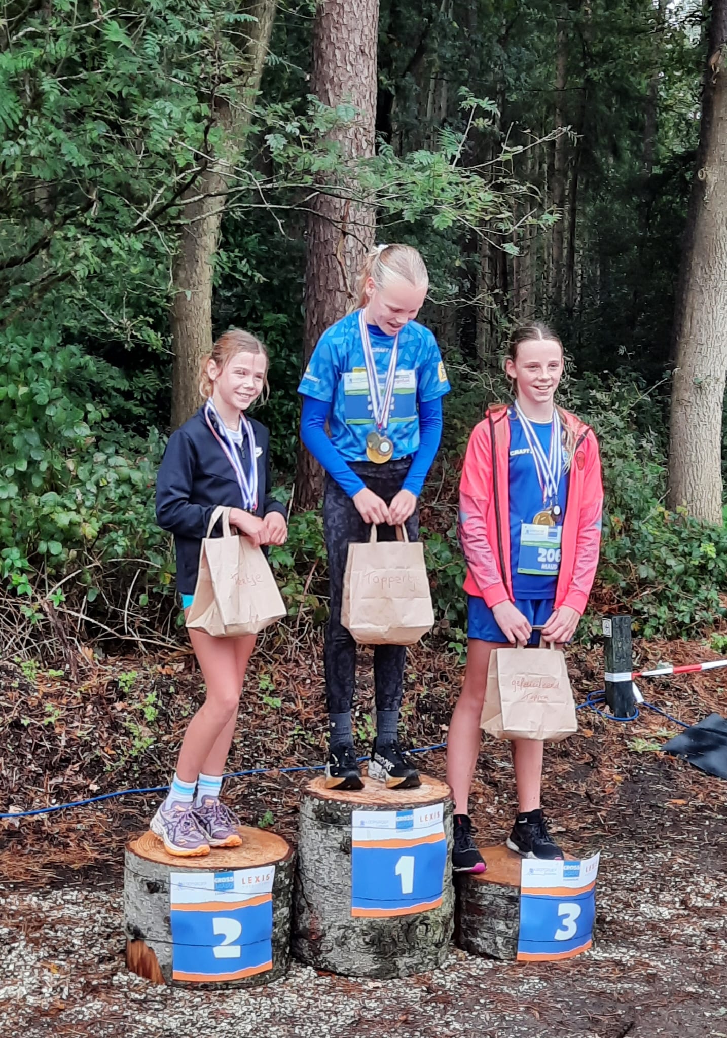 Podiumfoto 2 (2.5 km meisjes) vlnr: Saar Tuller, Aniek Bakker en Maud van Lubek