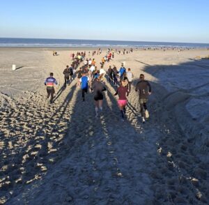 Om 13:45 klonk het startschot en vertrokken we richting het strand en de duinen. Ook liepen we nog een stukje door het bos. De weersomstandigheden waren super voor dit tijdstip van het jaar.