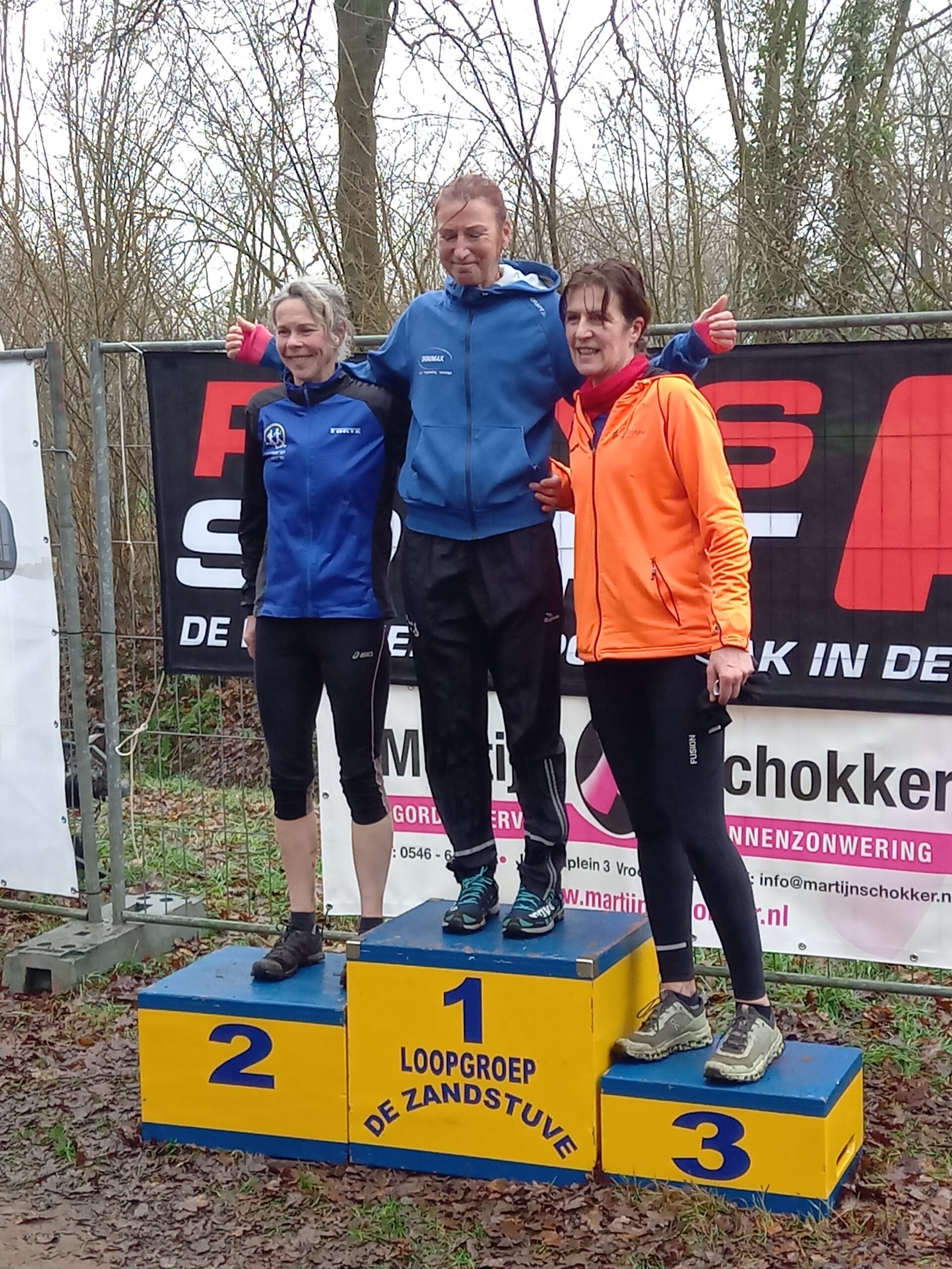 Foto: We zien het podium van de vrouwen 50+; met op de tweede plaats namens HAC’63 Laura Batterink en op de derde plaats Marian Booijink.