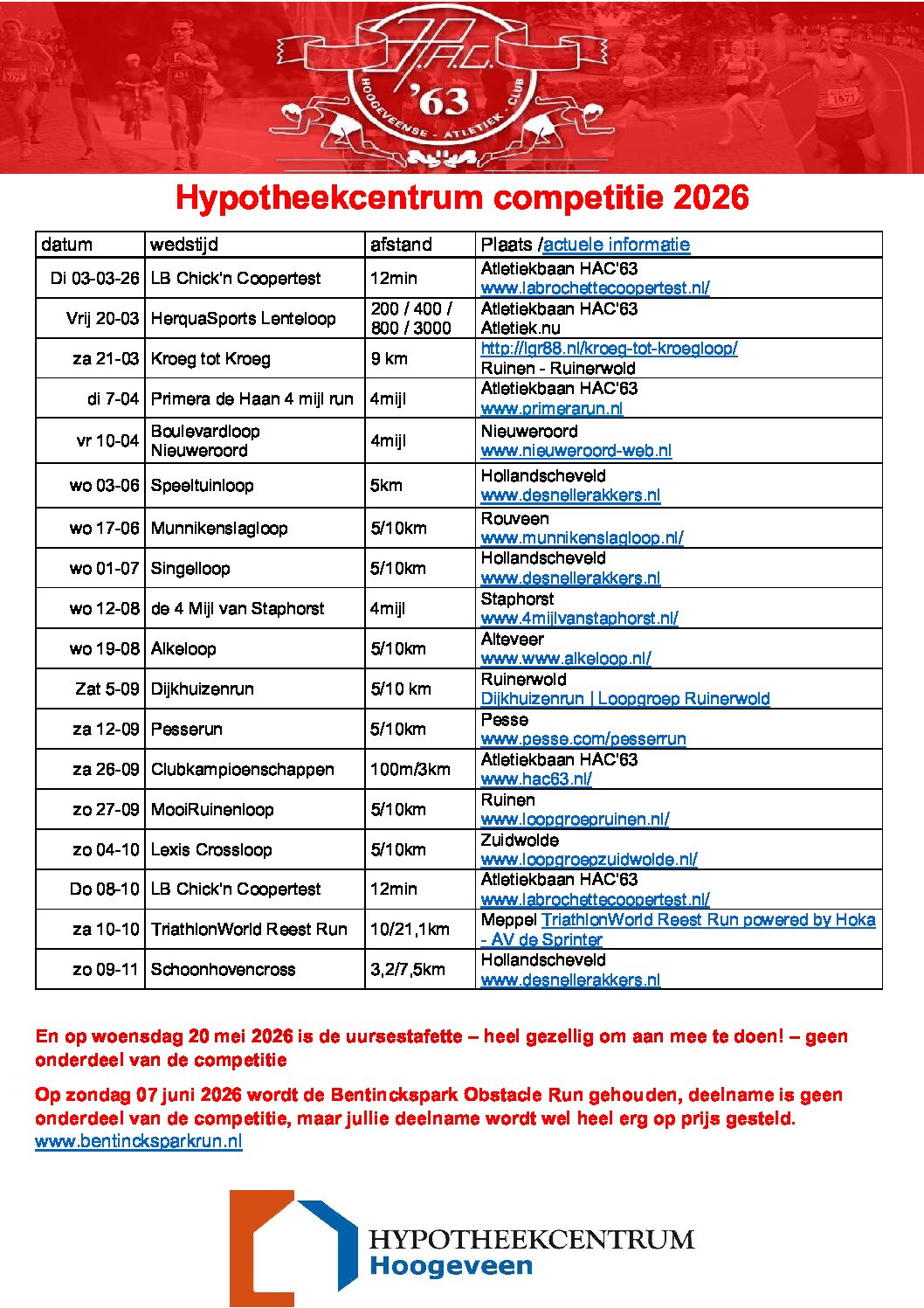 Hierbij het nieuwste overzicht van de Hypotheekcentrum Competitie: met aanpassing van data. En de Dijkhuizenrun is erbij gekomen.
