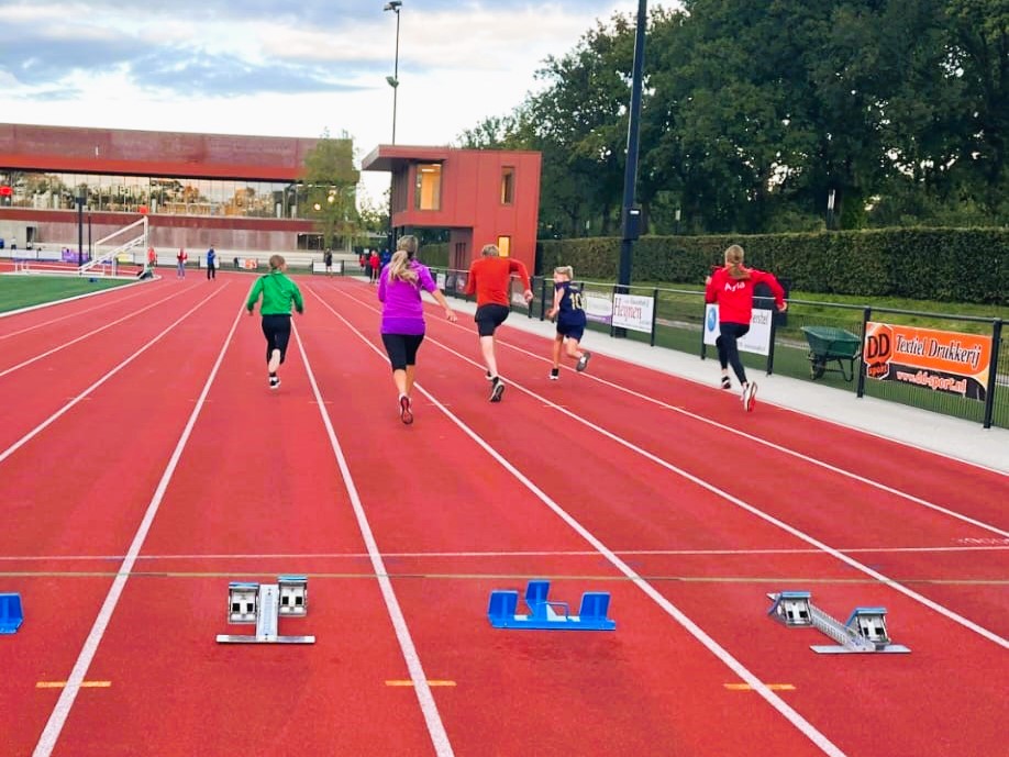 Daarna moesten we sprinten, mijn moeder vond starten vanuit de startblokken best lastig.