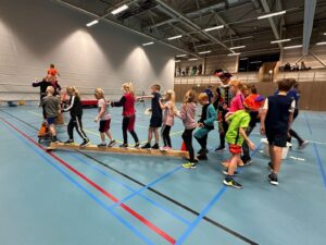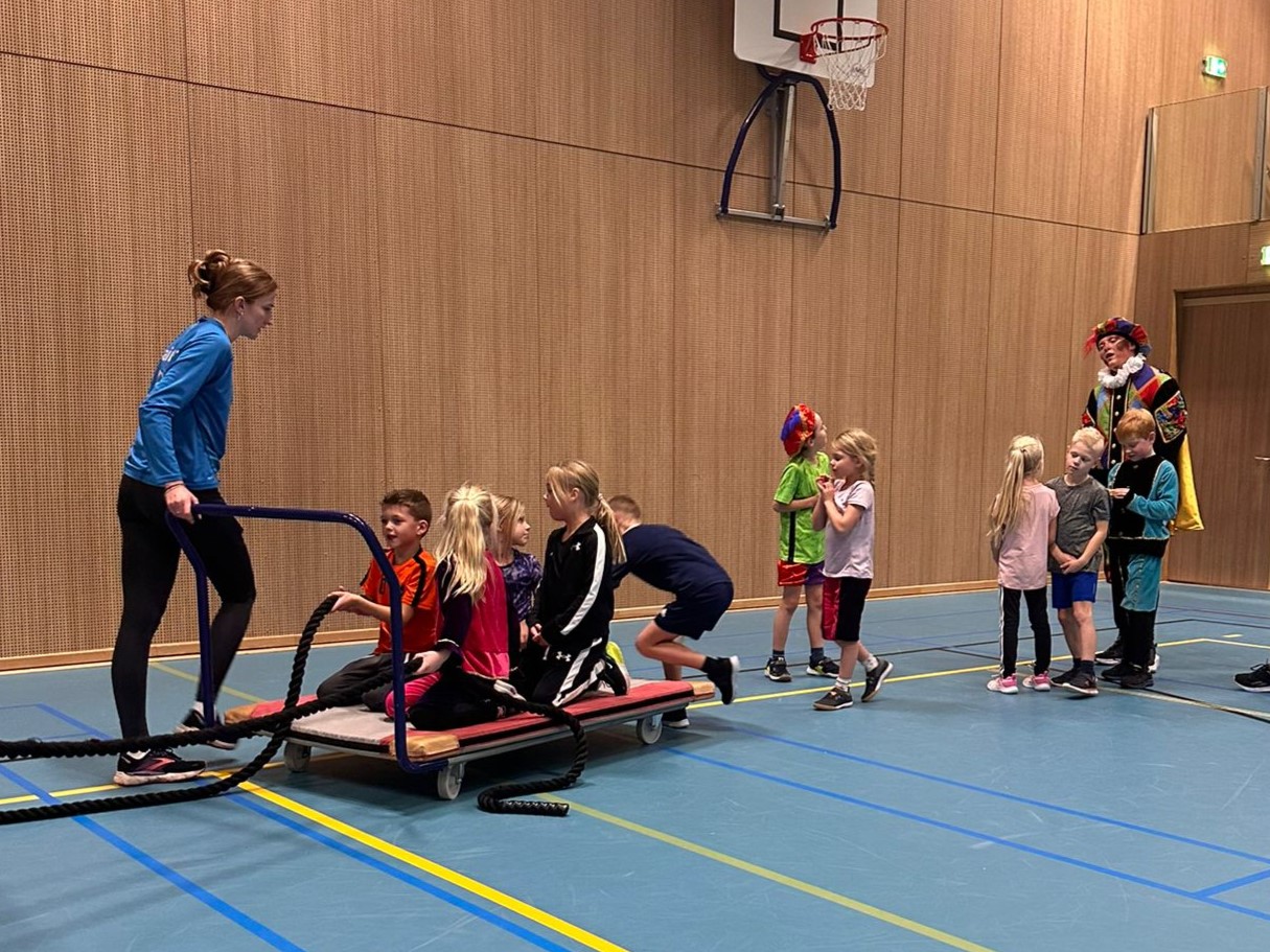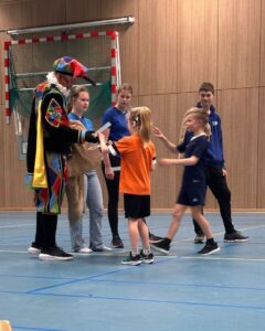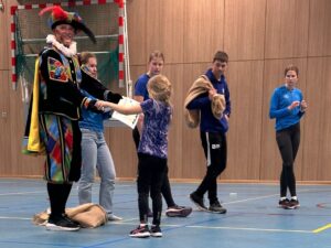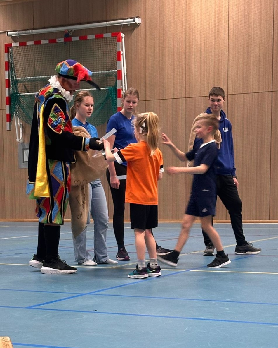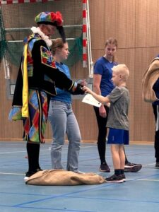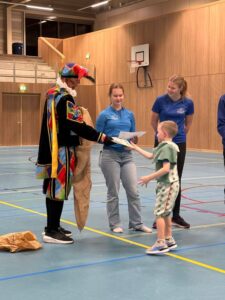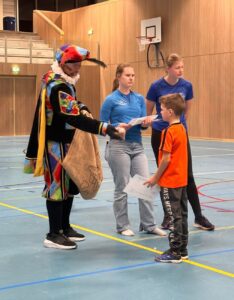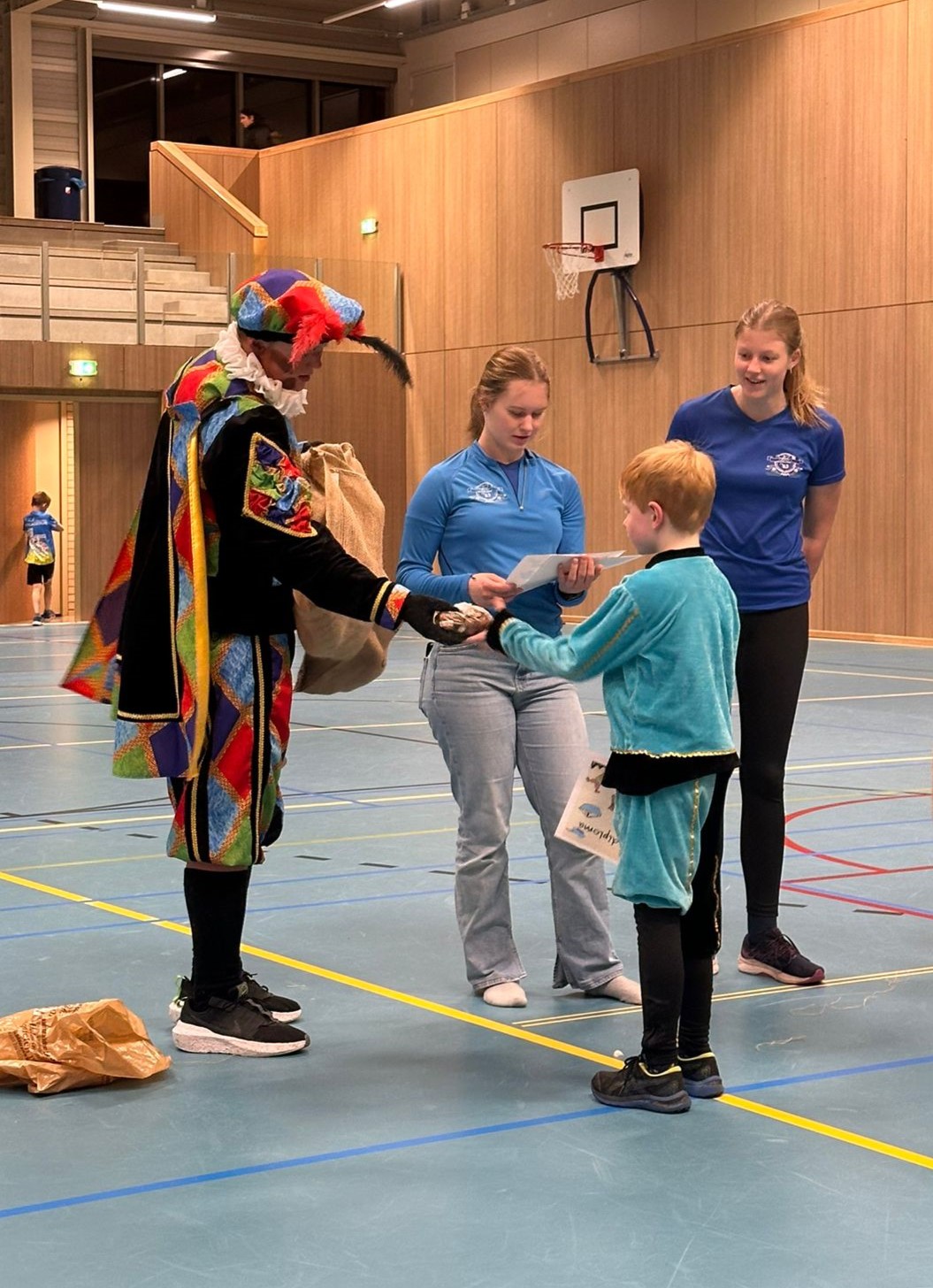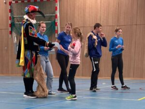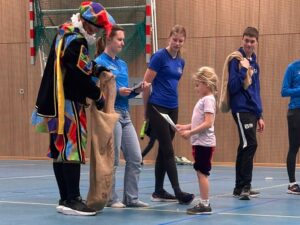 Natuurlijk kon piet niet ontbreken met pepernoten en kunstjes die geregeld was door de activiteitencommissie. De kinderen vonden het geweldig! Met als afsluiting een race tegen de piet waarbij de piet verloor! Hierna werden de diploma’s uitgedeeld en kregen de kinderen pepernoten mee.