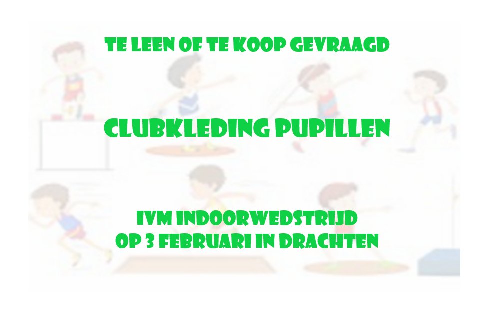 Op 3 febr doen er 18(!) pupillen mee aan de indoorwedstrijd in Drachten.