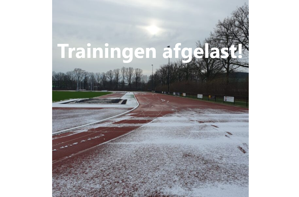 Door opvriezing is het spekglad op de atletiekbaan. Daarom hebben de trainers in overleg besloten dat alle trainingen van dinsdag 16 januari en woensdag 17 januari worden afgelast.
